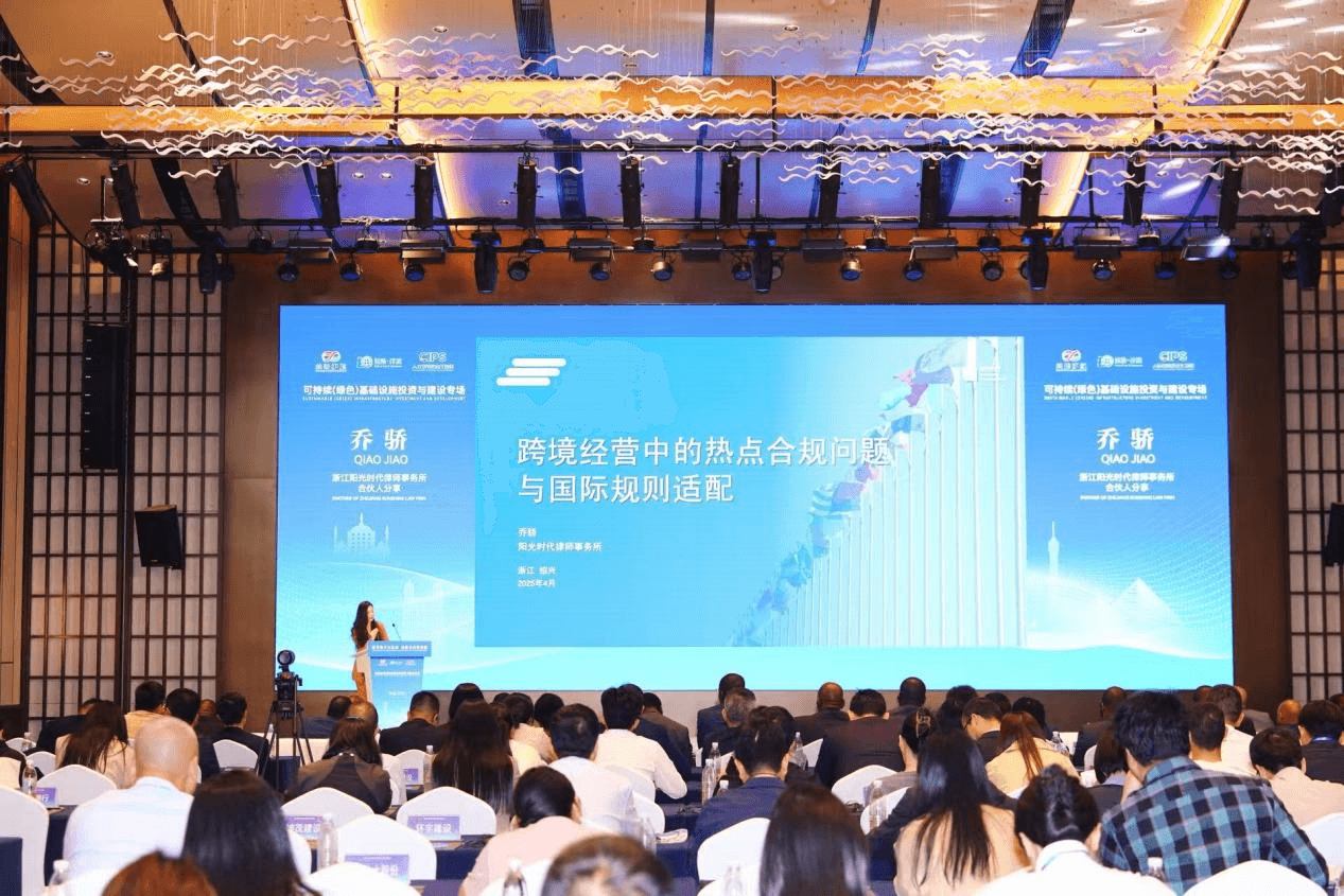 作为联盟成员单位,阳光所长期积极参与绍兴市商务局组织的各类企业出海服务活动。阳光所国际业务部/合规业务中心合伙人乔骄律师曾受邀在浙江省商务厅指导、绍兴市商务局主办的“可持续(绿色)基础设施投资与建设”专场活动中,作为法律行业唯一嘉宾,就“跨境经营中的热点合规问题与国际规则适配”进行主题分享。该会议汇聚了12个非洲国家的使节代表、政府机构及企业代表逾180人,是绍兴市推动企业高质量“走出去”的重要平台。并于同年9月17日,阳光所再度参与浙江省海外综合服务绍兴服务站工作会议,进一步体现了阳光所在地方政府与企业出海服务中的持续参与和专业价值。